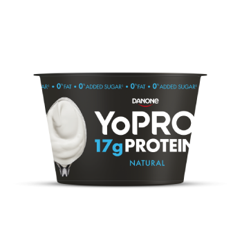 El YoPRO de cuchara natural contiene 17 gramos de proteína, sin azúcares añadidos ni materia grasa.